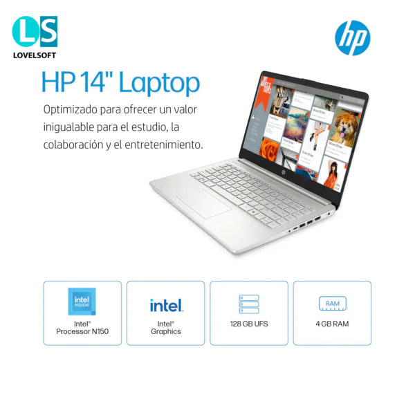 (Español) Laptop HP 14-DQ6011DX HD Intel N150 3.6GHz 4GB DDR4 UFS 128GB W11H